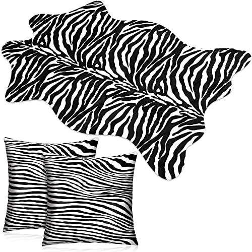 ゼブラプリントラグとゼブラ枕カバー3点セット 3x2フィート フェイクゼブラ エリアカーペット フェイクゼブラハイドラグ フェイク 並行輸入品