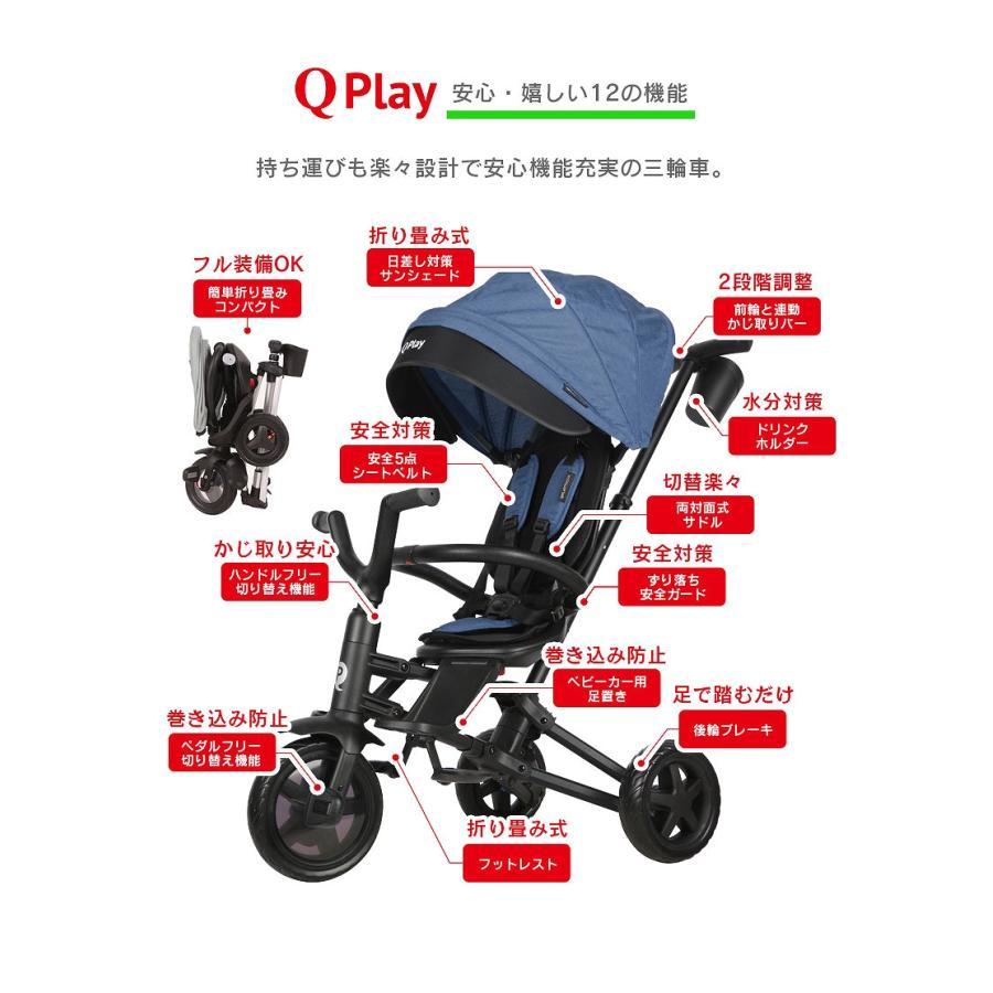 三輪車 折りたたみ かじとり ペダルフリー ハンドルフリー サンシェード 手押し車 手押し棒 折りたたみ三輪車 [Q Play NOVA EVA]