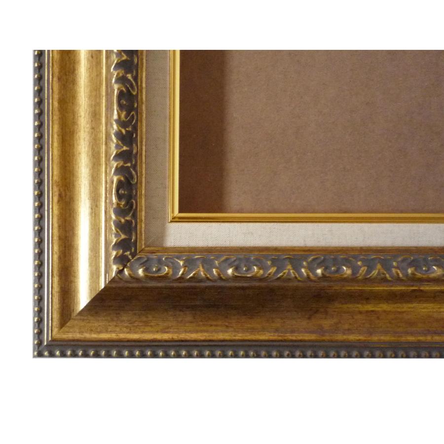 サイズ 絵寸 約530X410mm用 額縁外寸 約690X300X55mm仕様 本体 麻ライナー アクリル 吊金具 紐 ケース付色 ゴールド自社製作品別注可 受注生産品"}