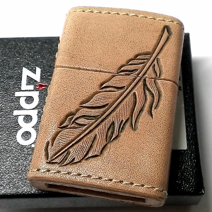 ZIPPO ライター 本革巻き ジッポ カオス フェザー 羽 Leather Works 牛革 ハンドメイド 彫刻 かっこいい おしゃれ メンズ ギフト