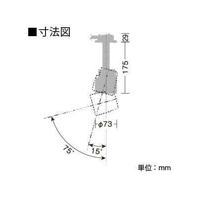 ●(灯具収納時)首振片側のみ15度、(灯具引出し時)首振片側のみ75度 回転360度