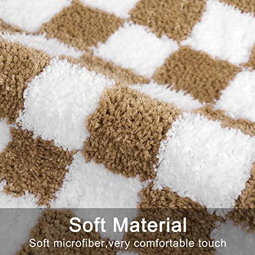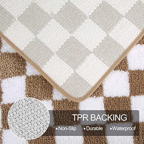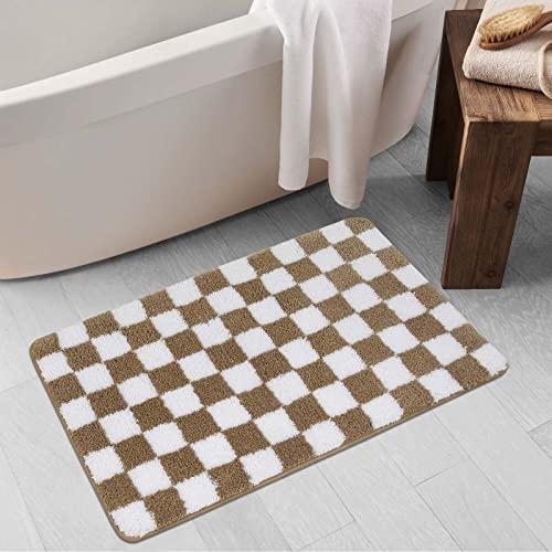 Uphome Bath Mat Khaki Checkered Bathroom Rugs Non Slip Water Abs 並行輸入品