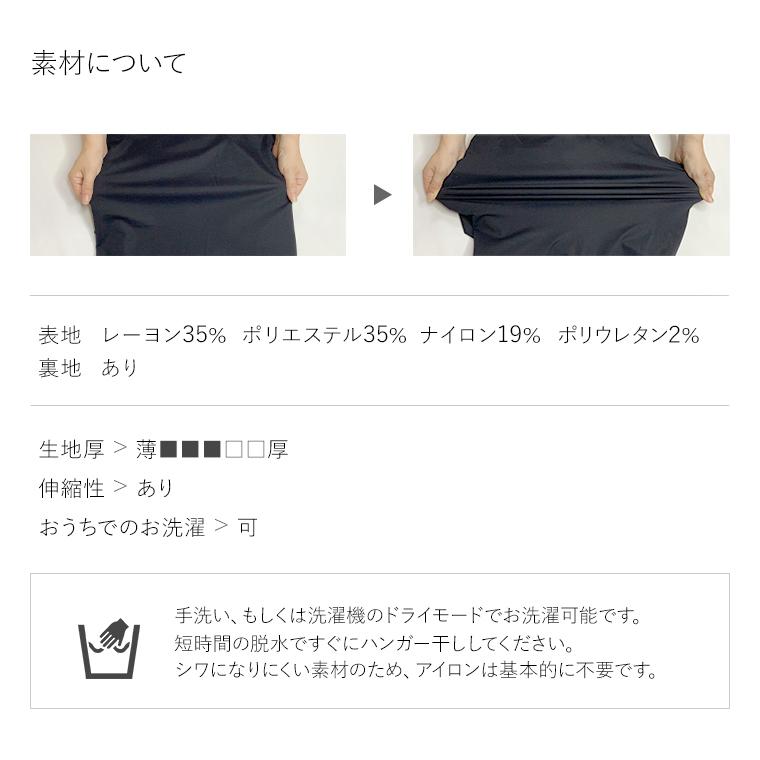 | ★最適サイズ/S いつもミミグラントのワンピースはSサイズを着ています。 このデザインもSサイズが丁度いいです。 バスト・ウェスト・ヒップ全て程よいゆとりで体に沿います。 着丈は膝下10cmくらい、ちょうどふくらはぎの中央辺りです。 私は脚が太いので(ふくらはぎ34cm)、ふくらはぎ真ん中辺りのミモレ丈は脚が太く見えそうで敬遠していましたが、裾幅が程よく絞られていて、膝丈ワンピよりも脚が細くキレイに見えびっくりしました。 全体のシルエットもミミグラントのワンピースの中では一番縦長シルエットで、ものすごくエレガント。 着やせ度も私の体型にとってはピカイチです♪ Sショートサイズだと着丈が膝下3cmくらいで普通の膝丈ワンピースという感じでも着られますが、ミモレ丈の方が断然シルエットが綺麗で脚も細く見えるのでSを選びます。 生地は艶やかでハリがあるため、服のフォルムがとても美しく出て体の形がキレイに見えます。 見た目からは想像できない伸縮性で、きちんと見えるのに動きやすく着ていて疲れません(^^)v | |