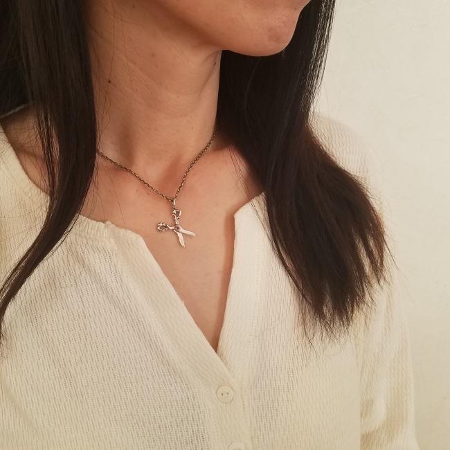 ◆商品説明 銀は古来から魔よけの力を秘める金属として大切にされていました。その魔よけの力をより引き出せるように「悪運を断ち切る」というテーマではさみをペンダントにデザインした当店オリジナルのネックレスです。 実際のはさみのように開閉できる可動部分を忠実に再現しており、リアリティーとデザイン性が融合したほかにはないネックレスです。また、誕生石を取り入れることで身につける人の運気を最大限に高めてくれるお守りのような存在。ペアネックレスとしても非常に人気のあるアイテムです。 美容師さんからモチーベーションが上がるということで大変ご好評を頂いております。◆寸法全長35mm幅 14mm 厚み 3mm 素材 silver925ストーン サファイア◆チェーン付きsilver925 太さ1.2mm小豆チェーン◆その他 誕生石一覧1月ガーネット 2月アメジスト 3月アクアマリン 4月ダイヤモンド 5月エメラルド 6月ブルームーンストーン7月ルビー 8月ペリドッ ト9月サファイア 10月ピンクトルマリン 11月シトリン 12月タンザナイト◆付属品ショップオリジナル巾着ポーチショップオリジナルBOXラッピングご希望の場合は手提げ袋もお付けしております。"} 現在「入荷待ち」になっている商品は1〜2週間の製作日数を頂きます。