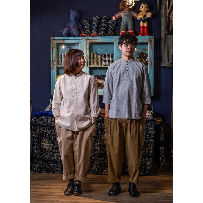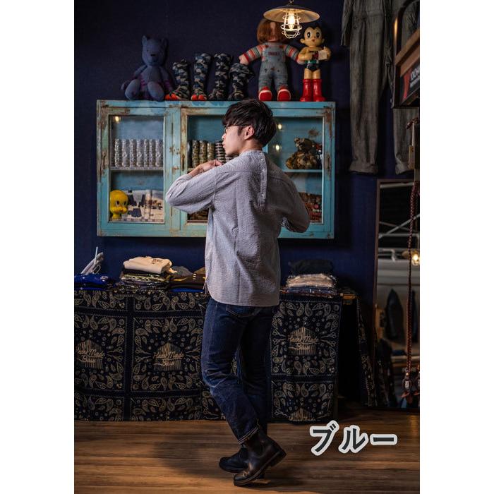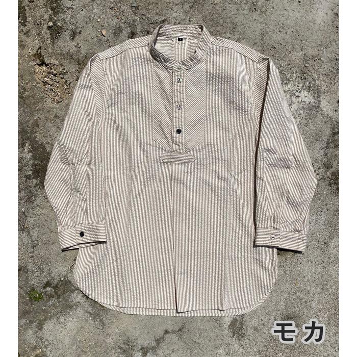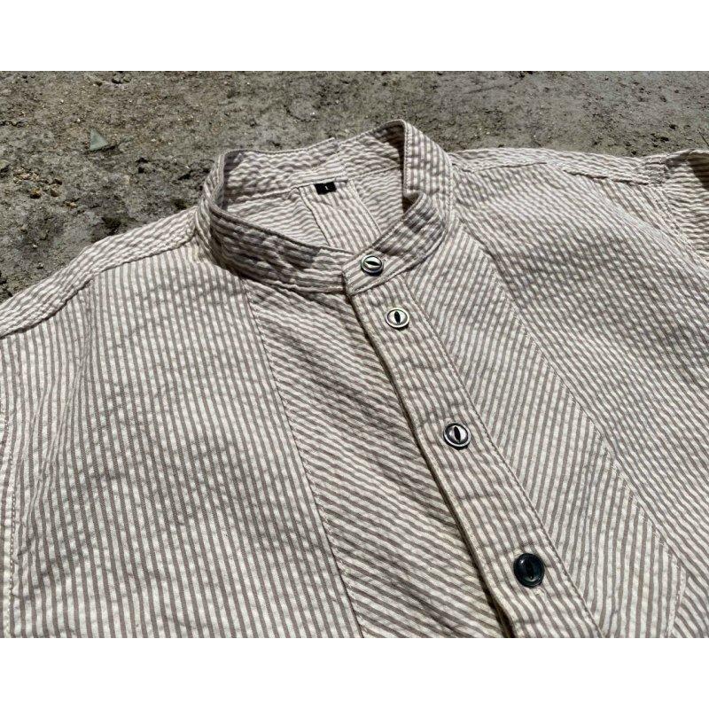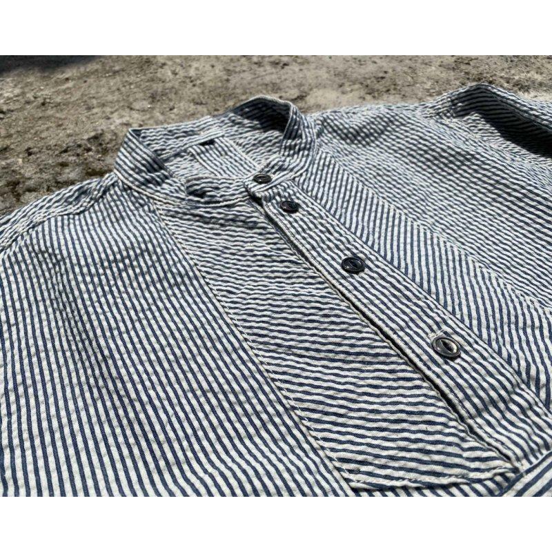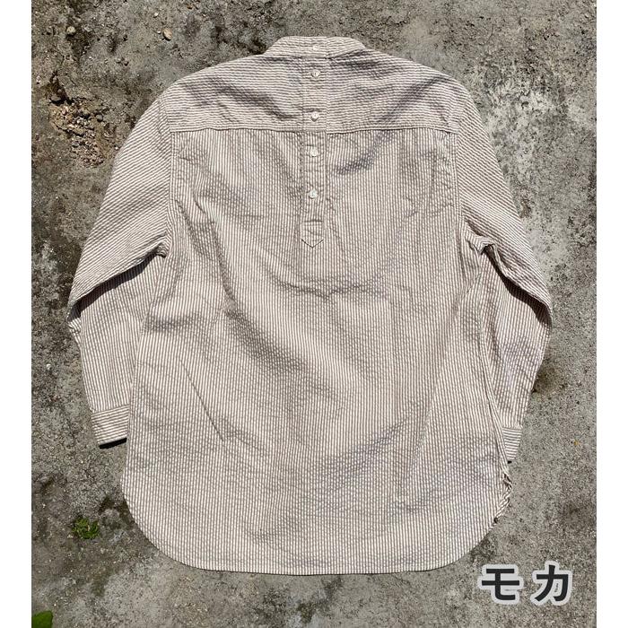ヴィンテージのフィッシャーマンシャツは強めなストライプ柄が多いですが、サッカー生地ならではの雰囲気の柔らかいピンストライプとなっています。