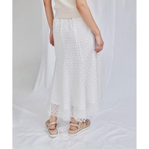 繊細で美しいケミカルレースに心惹かれる、フェミニンなロングスカート。細番手の糸を使った上質な刺繍レースが、上品な着こなしを叶えます。ウエスト周りはすっきりと、裾に向かって広がる大人なマーメイドシルエットでお作りしました。ヘムラインはスカラップで仕上げ、さらにインナーと着丈差を設ける事で透け感が生まれ、ロング丈でも重く見えずに着て頂けます。夏のデイリースタイルにぴったりなスカートをぜひお見逃しなく。