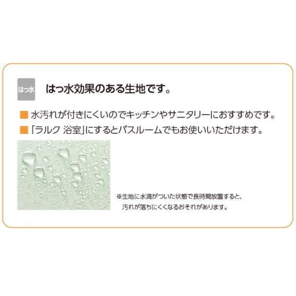はっ水効果のある生地です。水汚れが付きにくいのでキッチンやサニタリーにおすすめです。「ラルク 浴室」にするとバスルームでもお使いいただけます。※生地に水滴がついた状態で長時間放置すると、汚れが落ちにくくなるおそれがあります。※オプション(別料金)でビスを使わず、つっぱる力で製品を取り付ける事が出来るテンションバーもあります。ご注意事項