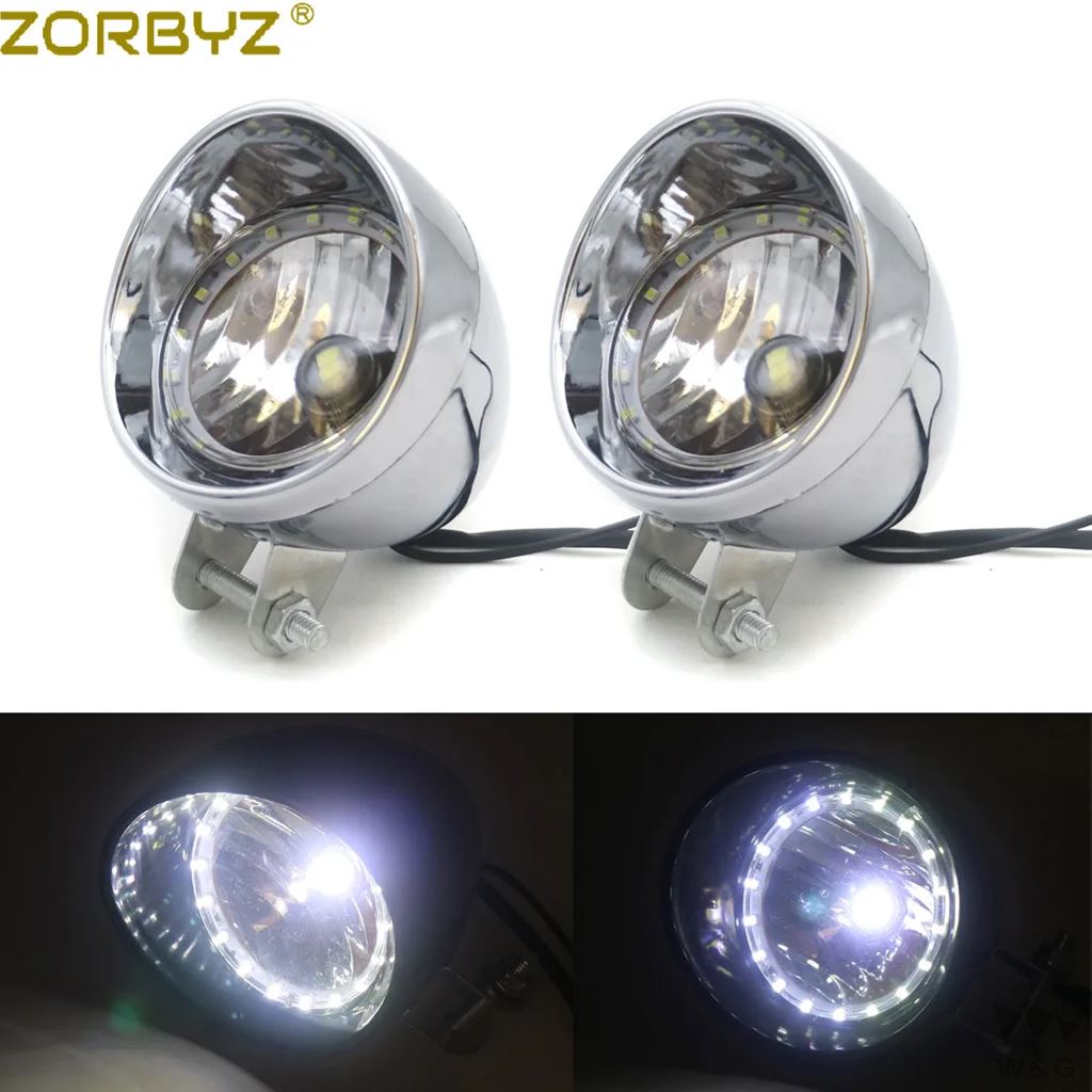バイク クロム LED 弾丸点ライトフォグライト白エンジェルアイ ハーレー ホンダ ヤマハ カスタムパーツ アクセサリー 交換用部品 互換品