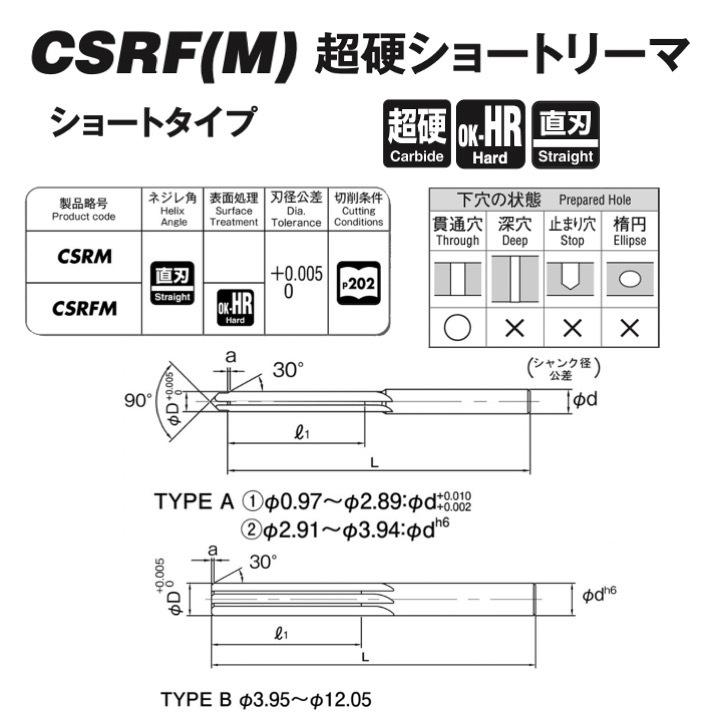 【送料無料】 岡崎精工 CSRM 8.91 超硬ショートリーマ(百分台) ノンコート CSRM0891